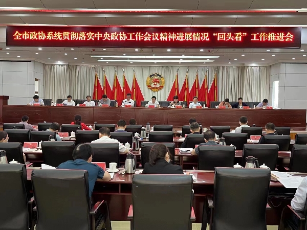 5月26日上午,全市政协系统贯彻落实中央和省委、市委政协工作会议精神进展情况“回头看”工作推进会召开。市政协主席、党组书记曹忠良,副主席、副书记赵洁,副主席苏国志、张晖、苗琛、邢广华、刘海潮、刘述荣、张志刚、李尕果,秘书长许东升出席会议。市政协副秘书长、各委室负责人,各县(区)政协主席、秘书长(办公室主任)及乡镇(街道)政协工作召集人代表参加会议。会议由赵洁同志主持。